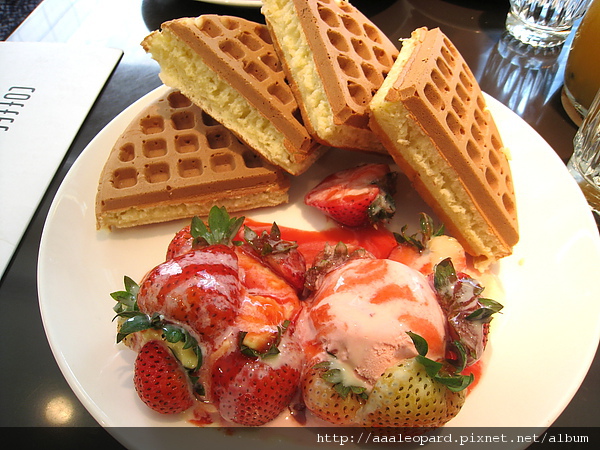 所以我點了 草莓冰淇淋鬆餅 總匯三明治 水果茶