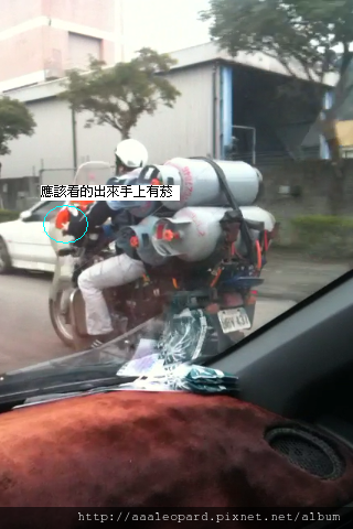 一台機車載著四個瓦斯桶 真是好不威風啊