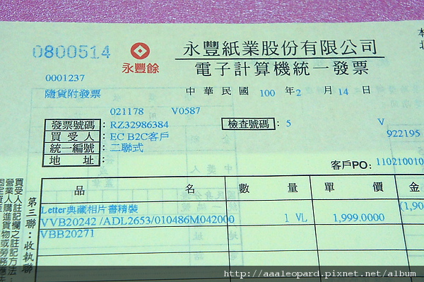 價格是1999元 也註明是由永豐紙業所開立的發票