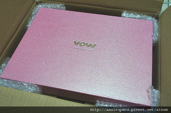 打開箱子裡面還有個粉紅色的盒子 四個角有用氣泡布保護著